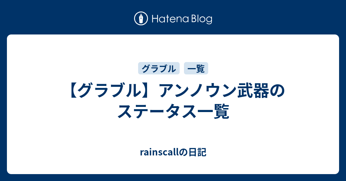 グラブル アンノウン武器のステータス一覧 Rainscallの日記